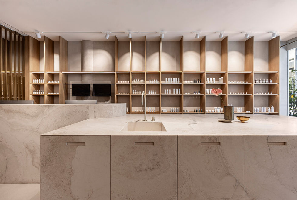 בוטיק תל אביבי לקוסמטיקה, החלל מהווה חנות למוצרי קוסמטיקה בחזית.